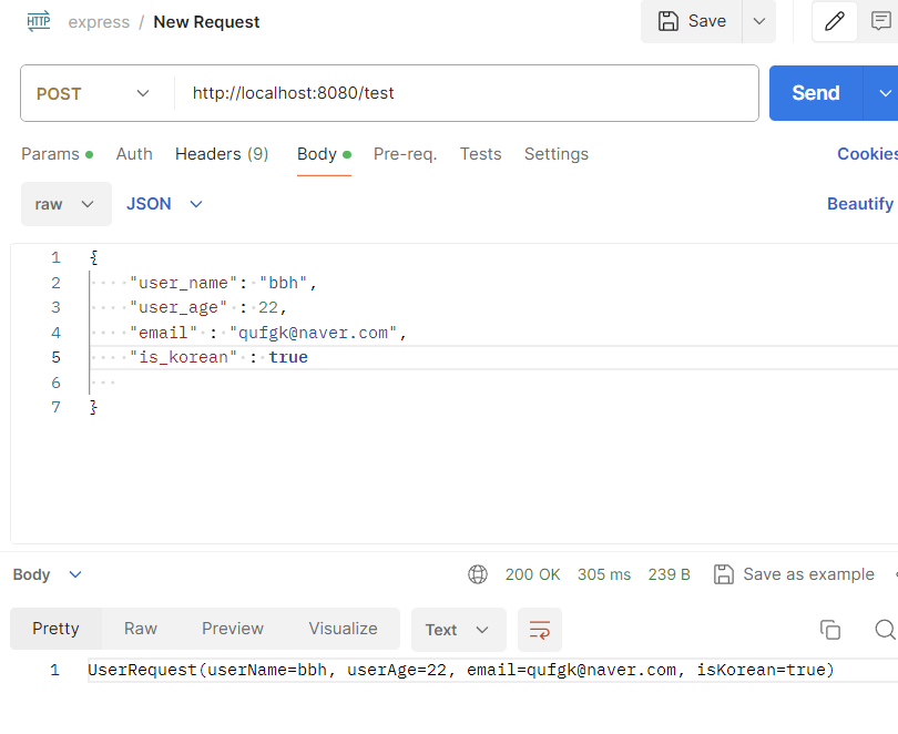 200 OK로 정상적으로 post 됐음을 알 수 있고 이런 라이브러리를 사용함으로써 FE와 BE사이 변수 형식을 맞출 수 있다!