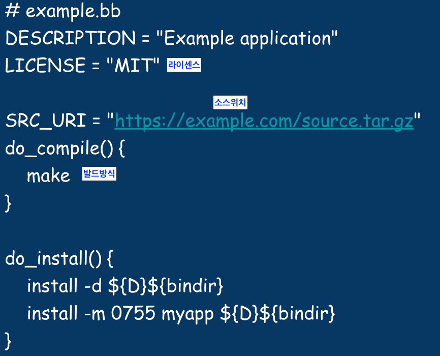 이러한 메타데이터를 레시피라 하고 .bb확장자를 가진다.
