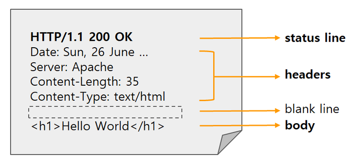 [HTTP Method] [Request target] [HTTP version]* HTTP Method : 요청의 의도를 담고 있는 GET, POST, PUT, DELETE 등이 있다.