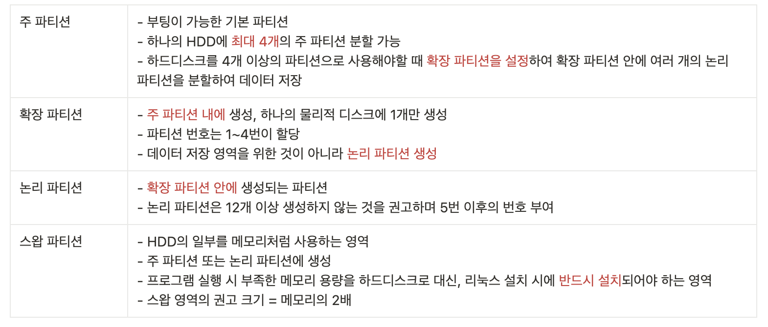 | - 기본 설치 및 유형 - 파티션과 파일 시스템 - Boot Manager |